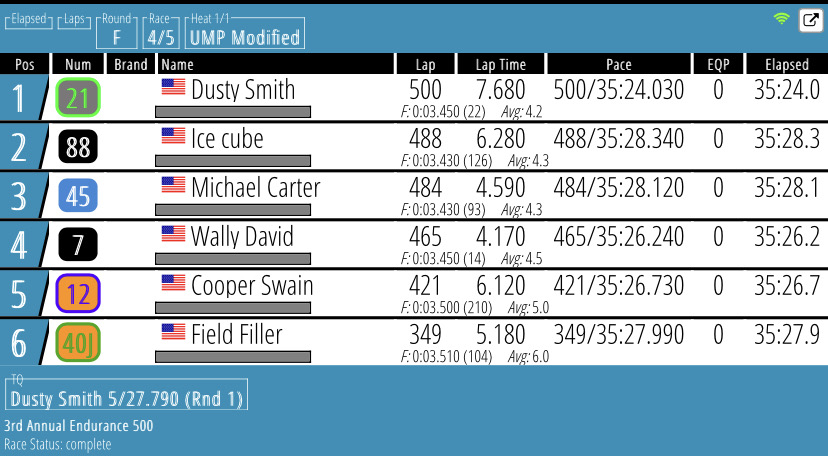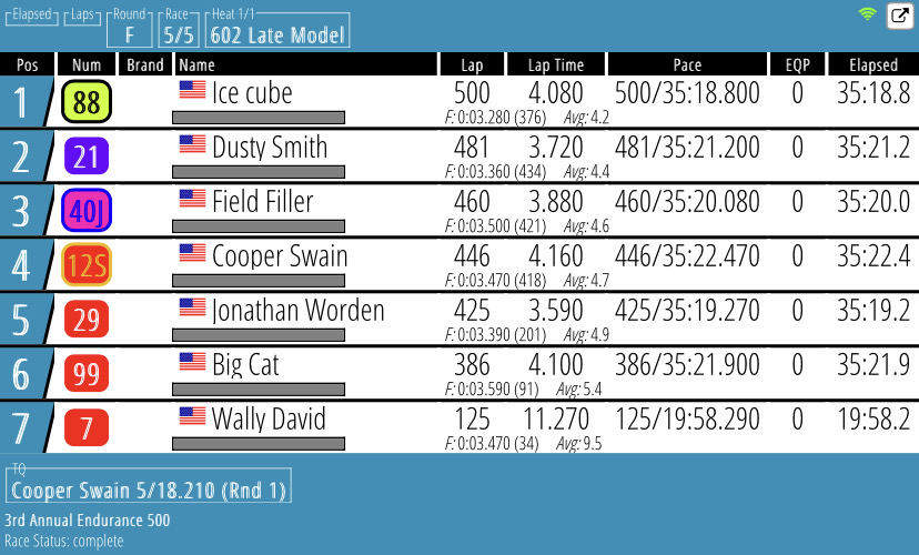 Qualifying & 500 Lap Races